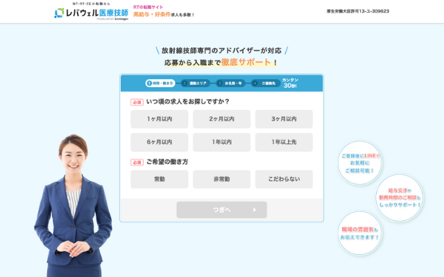 - 職場探し、面接、条件交渉まで、を希望する放射線技師を無料でサポート