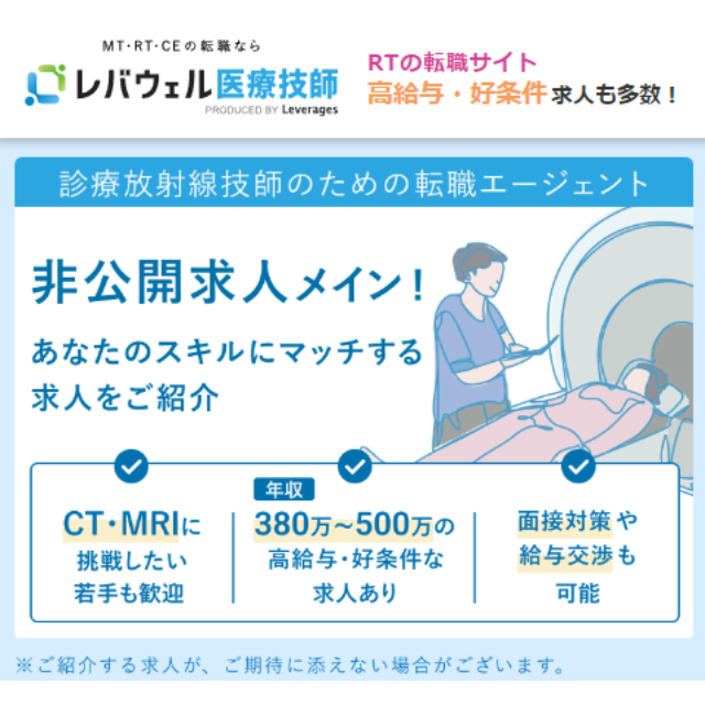 で働きたい放射線技師が転職先を探すなら、レバウェル医療技師は外せないサービスです。